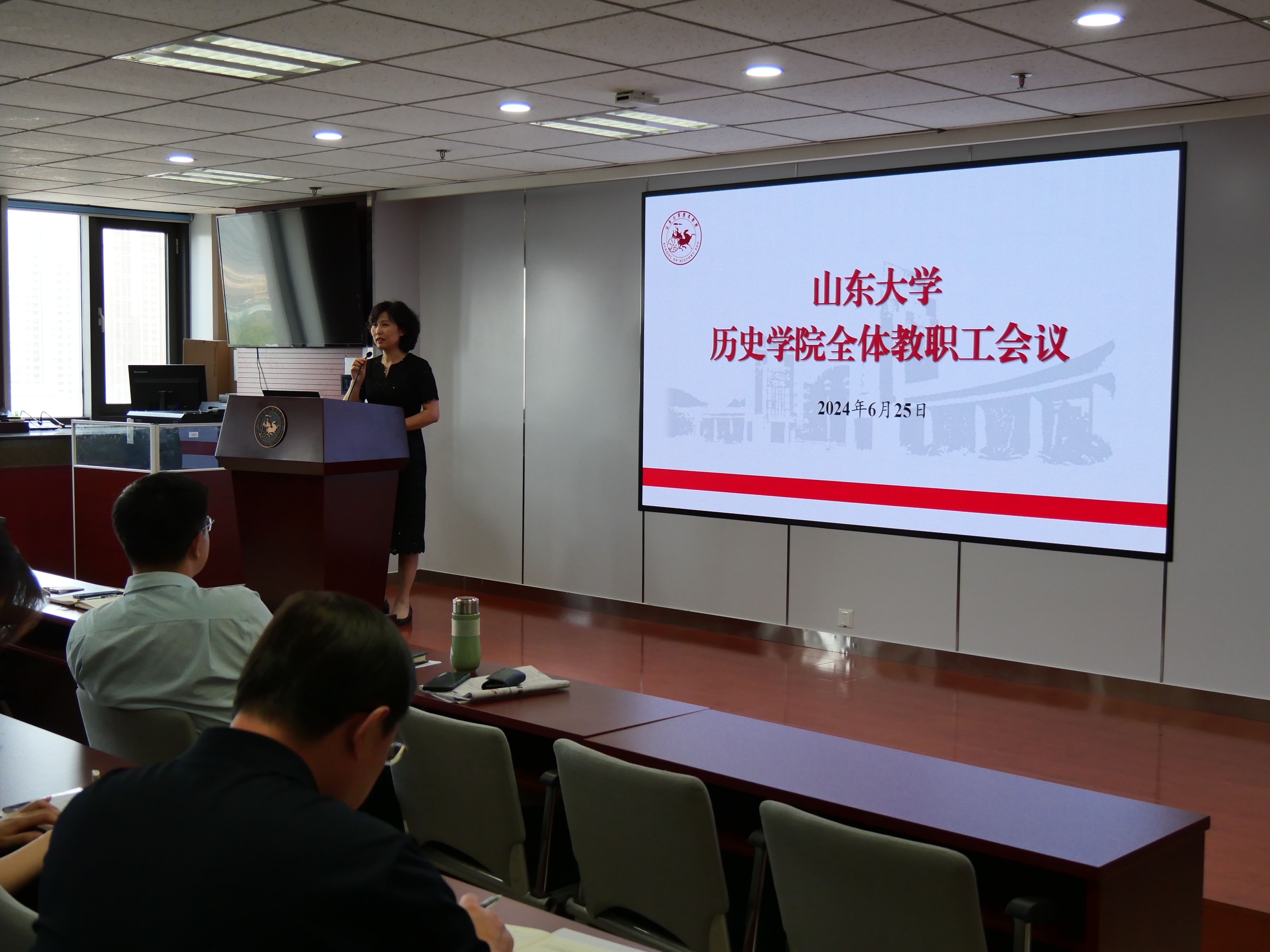 6月25日,历史学院召开全体教职工会议,总结2024年春季学期各项工作,部署安排暑期及秋季学期工作。院长代国玺出席会议并讲话,党委书记刘军主持会议。