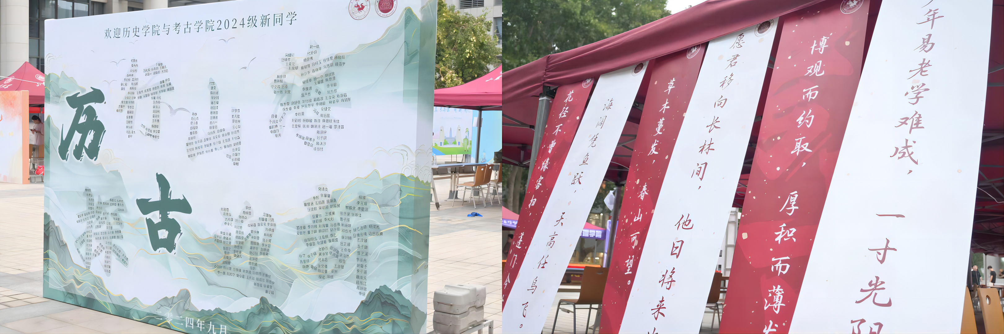学院设置原创特色“历经山海,探古迎新”主题姓名展板,新生可以在展板上寻找自己的名字,通过使用学院特色道具完成拍照留念,增加迎新活动互动性,也让每位新生切实感受到加入了历史学院、考古学院这个温暖的大家庭。结合专业特色,学院为每位新生精心准备了新生大礼包,内含院衫、电脑贴、挂钩、文件夹、手机支架等,蕴含缘聚山大、缘聚历史与考古的美好期许和祝愿。与此同时,学院招募了众多学生志愿者,带领新生熟悉校园,持续为新生答疑解惑,帮助新生快速适应大学生活。
