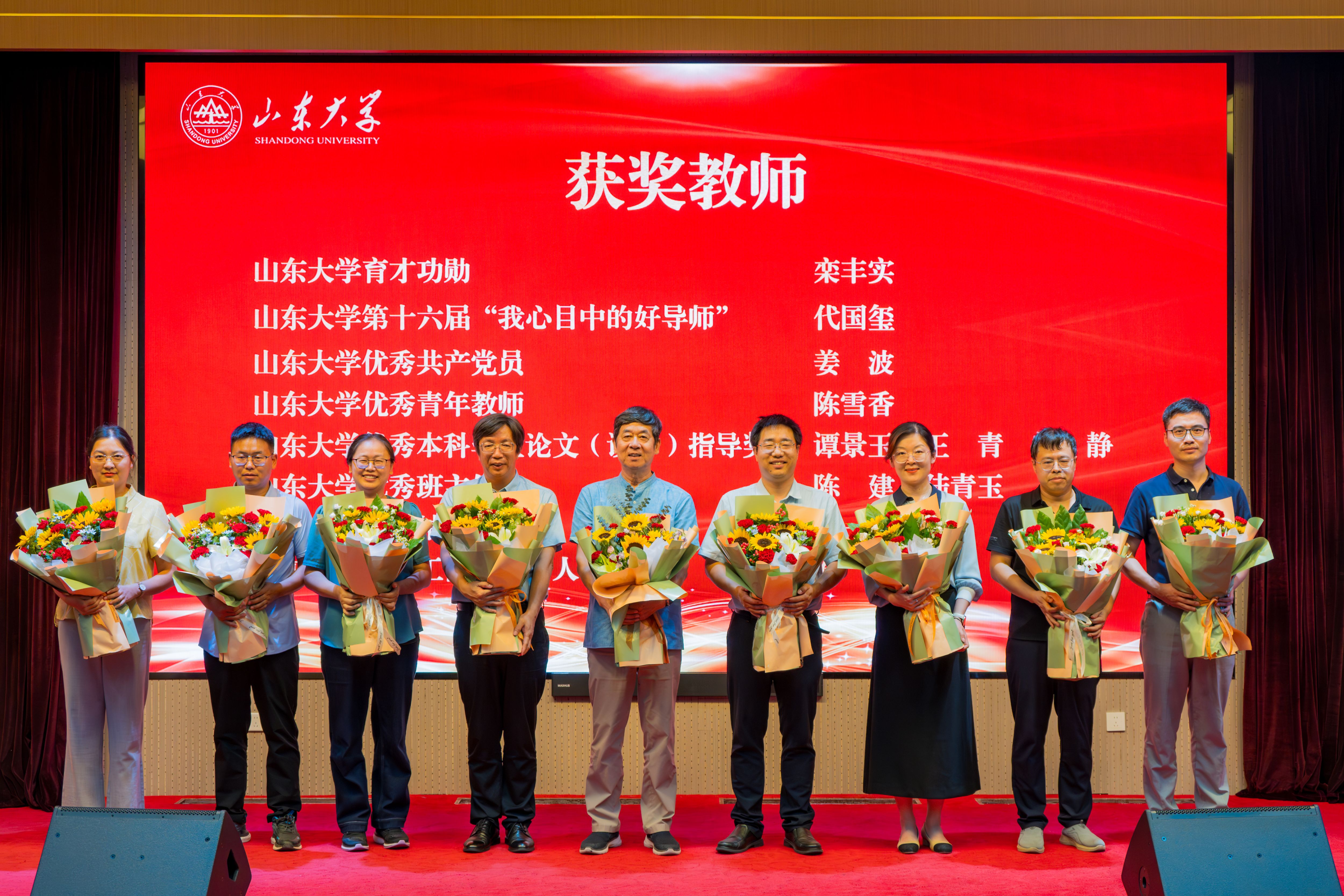 第二阶段对2024年度获奖教师进行表彰。山东大学优秀共产党员姜波作为获奖代表向大家介绍了自己近年来主要研究方向和成果,感谢学院和全体教师的支持与帮助,表达了向全体教师的鼓励和期待。